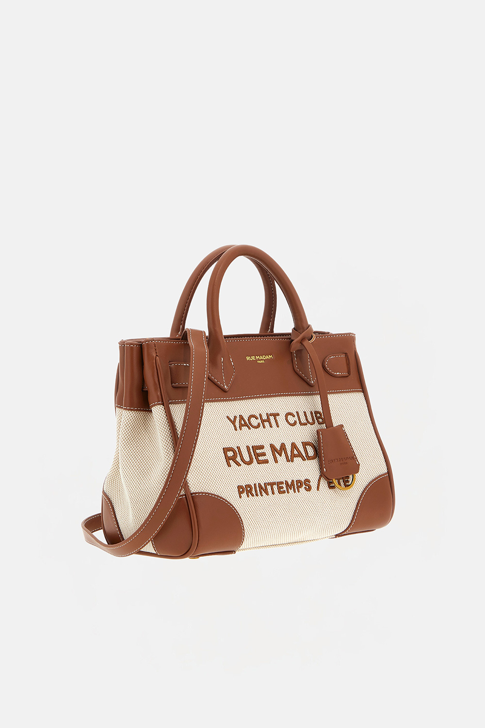 Mini Tote bag in canvas with an elegant and refined design, enhanced by eco-leather trims and details with contrast stitching that highlight its sophisticated aesthetic. The bag is embellished with the new "YACHT CLUB" embroidery for a distinctive and stylish touch. The interior features a cotton lining with pocket, perfect for everyday organization. Dimensions: L 27 × H 22 × W 13 cm